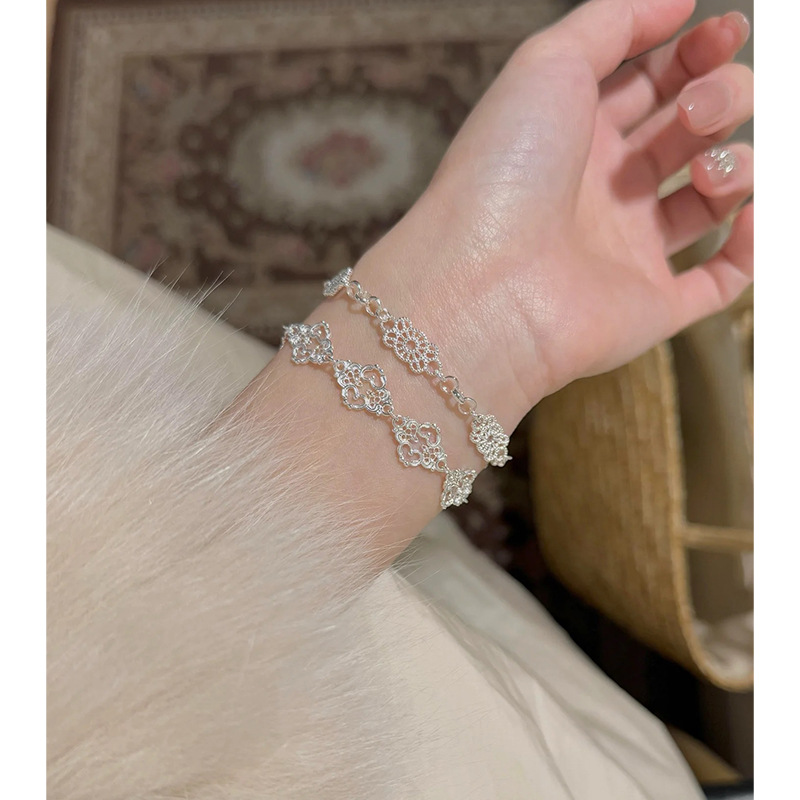 持恒S925纯银几何镂空蕾丝手链女小众轻奢甜美优雅手饰高级感百搭