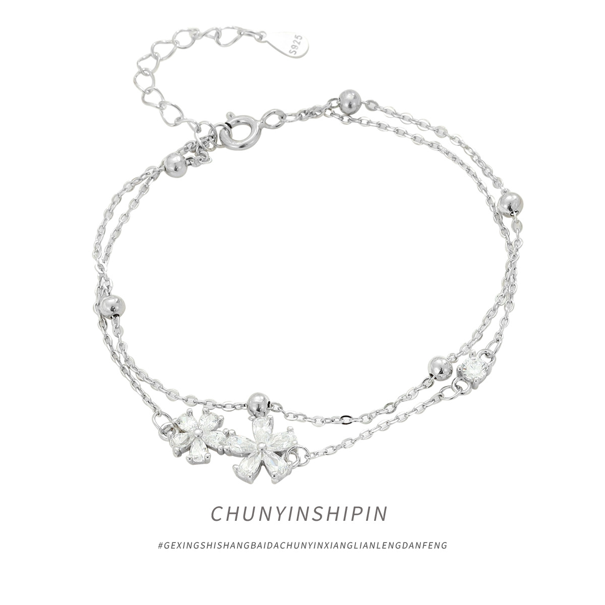 S925純銀の小さいドリルの花の二重のブレスレットの小さい大衆の気質のアクセサリの高級感の個性の百合のジルコンの手は女性を飾ります。