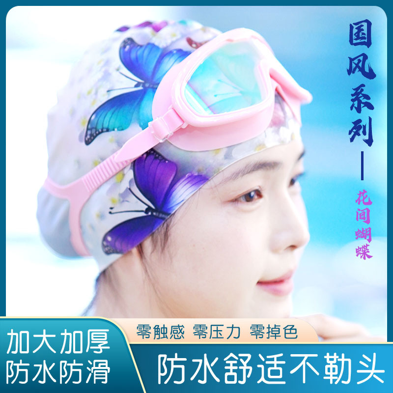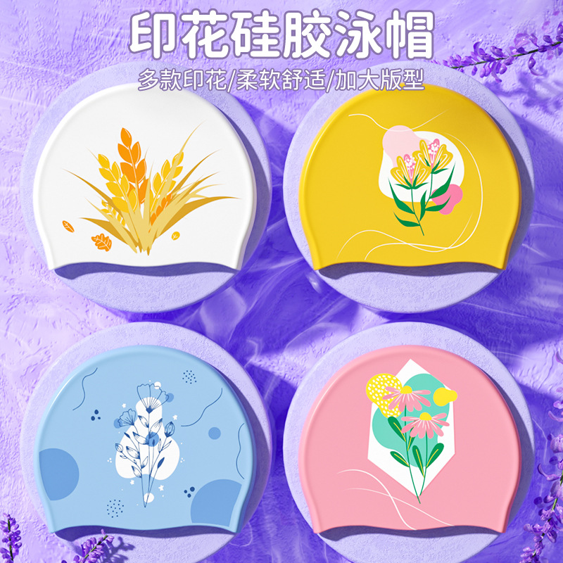 メーカー直販水泳帽シリカゲル女性防水快適で頭を切らないファッションプリント水泳帽専門卸売り