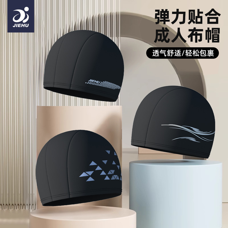捷虎水泳帽、ニット水泳帽、在庫あり、卸売、無地、柄入り水泳帽、男女兼用、快適で頭を締め付けない