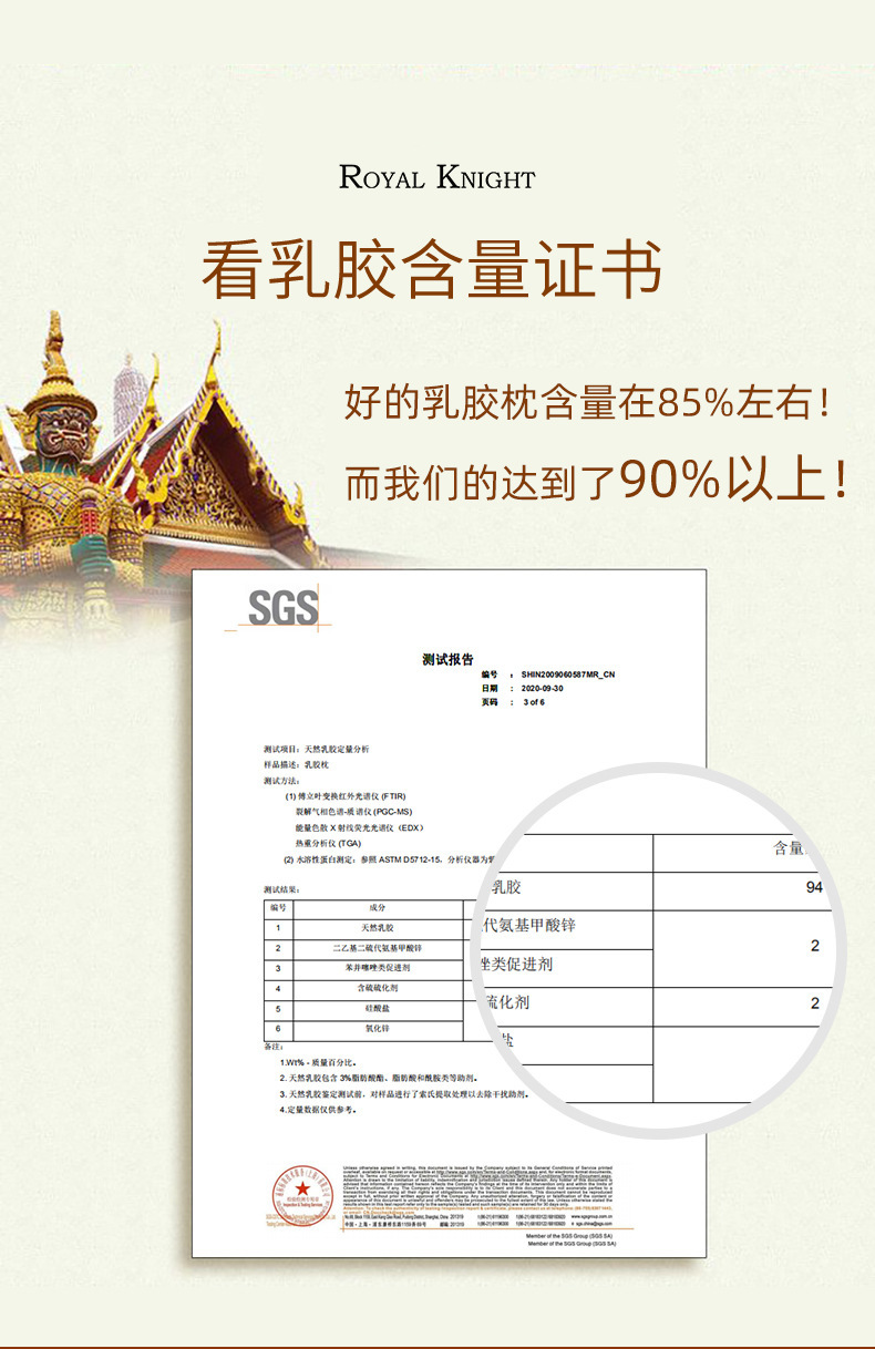 工場RoyalKnight成人ラテックス枕原装天然ゴム枕抗菌首保護ラテックス枕プレゼント