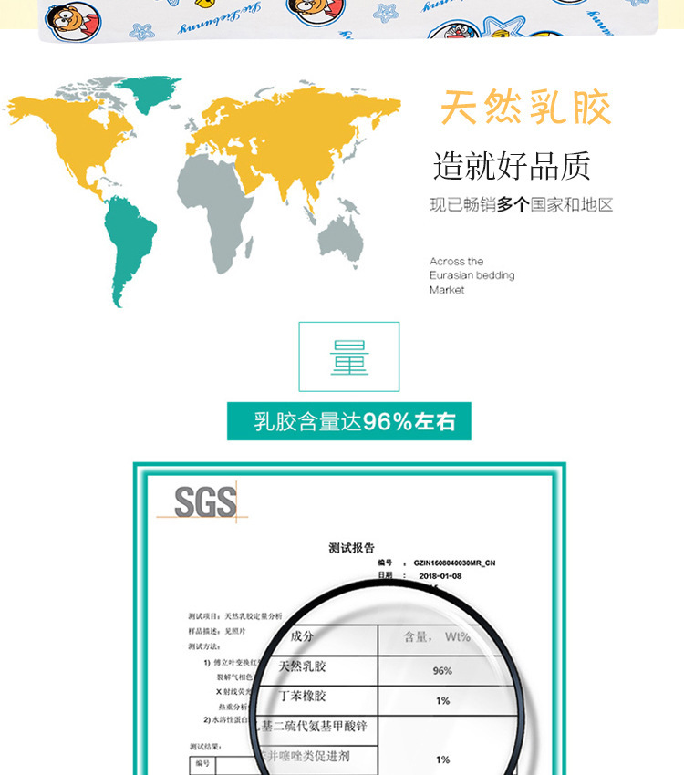子供用ラテックス枕タイ天然ラテックス枕2-18歳漫画赤ちゃんラテックス枕保護首枕カバー卸売