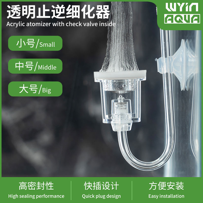 WYIN水族二氧化碳止逆计泡细化器透明亚克力U型管CO2注水细化器