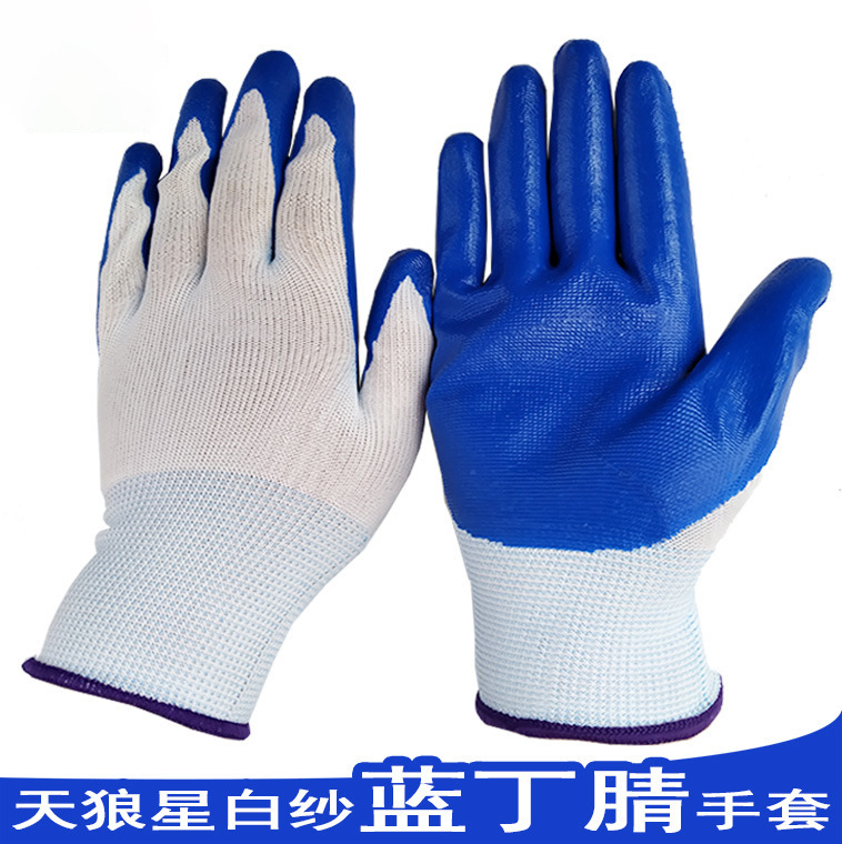 恒遠少なくとも11白紗青ニトリルゴム浸漬平掛手袋丈夫滑り止め片面ゴム半ゴム労働保護作業手袋