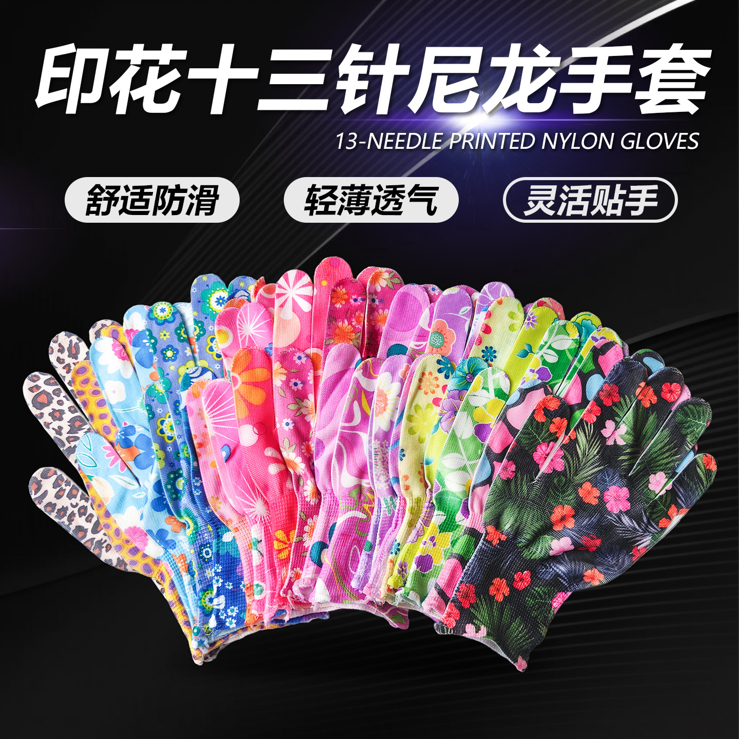印花尼龙针织手套女干活薄款快递打包专用手套女干活劳动劳保手套
