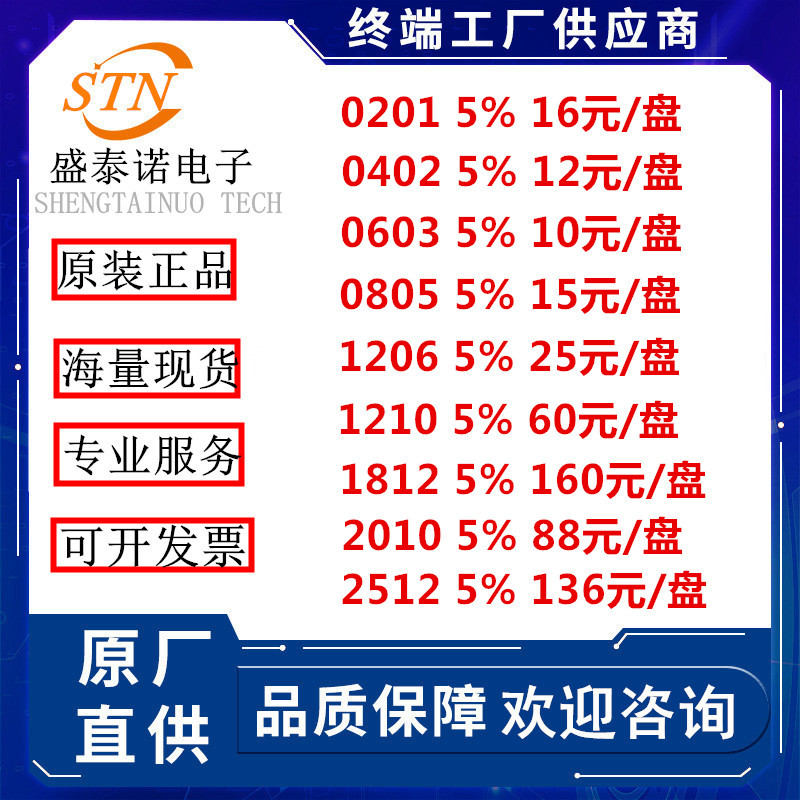 風華/国巨/ 厚声/香港抵抗0201/0402/3900/0805/1206/1210チップ抵抗