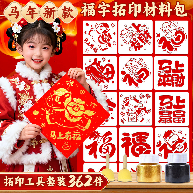 马年福字拓印材料包套装镂空福字模板年画模具非遗手工diy活动