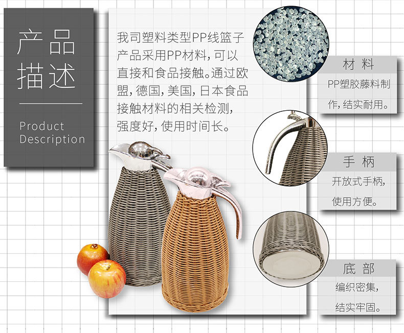 藤編保温壺ヨーロッパ式編み藤壺藤編ステンレス真空保温壺収納藤壺工場価格卸売り