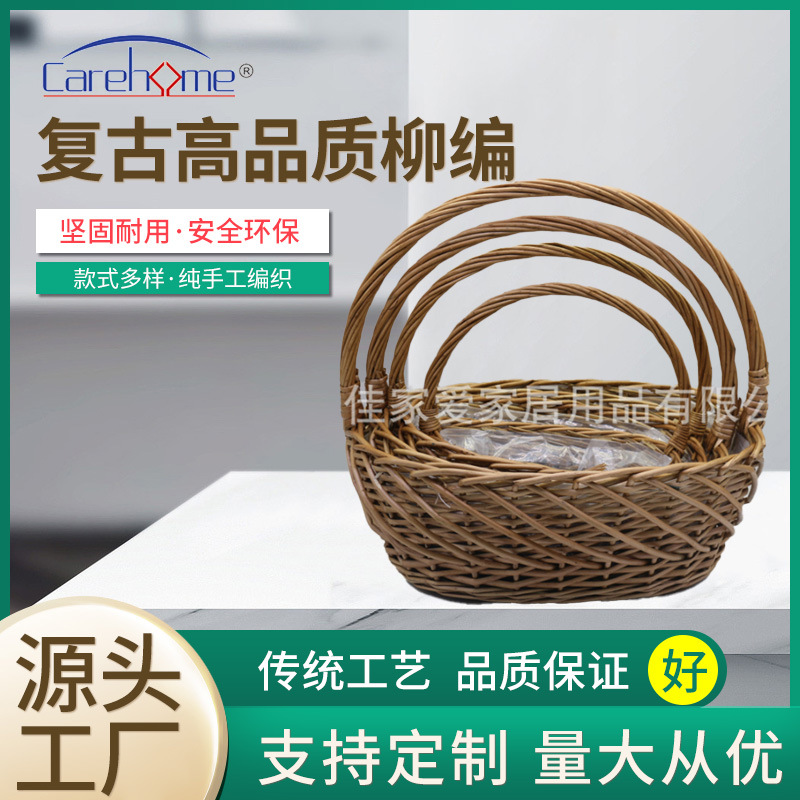 広州佳家愛復古高品質柳編み手作り花籠半柳果物籠手作り藤編み収納籠