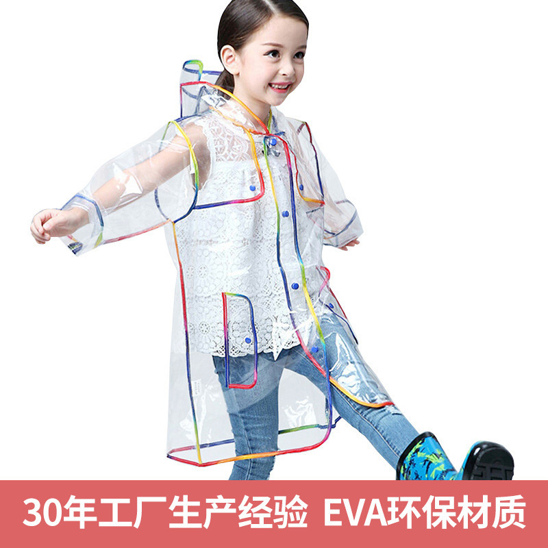クロスボーダー AliExpress スポット肥厚 EVA 子供裾上げレインコート小学生透明ポンチョ防水ハイキングレングスタイル