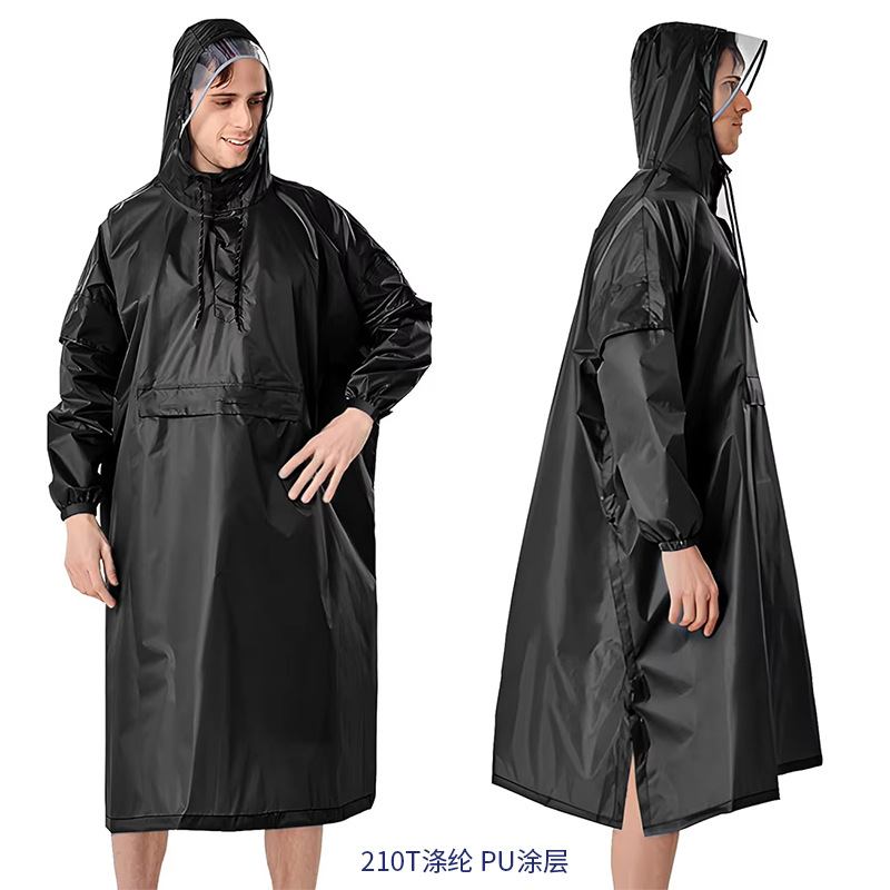 大人の黒いレインコートのゆったりした長さは袖のレインコートがあります。