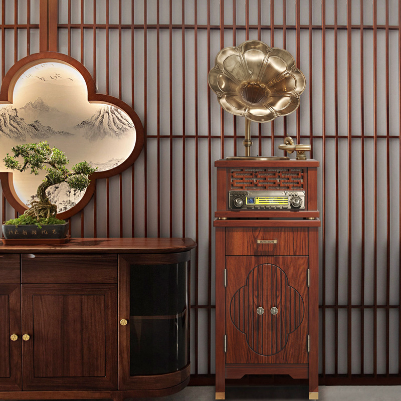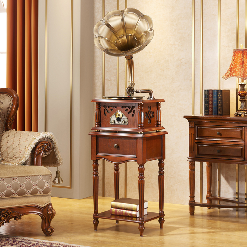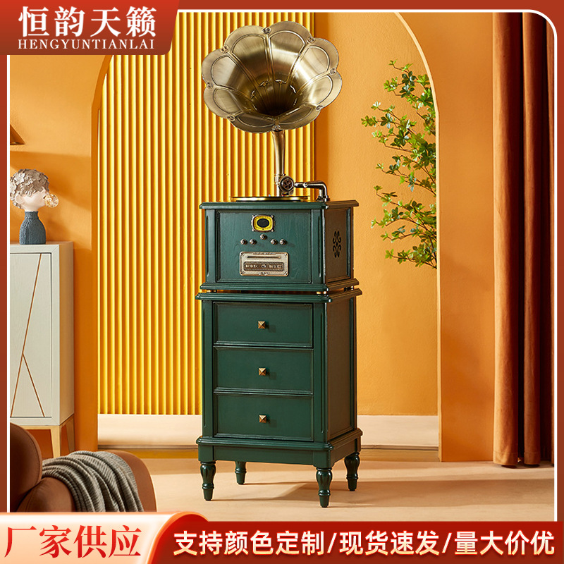 美式复古留声机客厅家用一体式黑胶唱片机多功能实木音响老式摆件