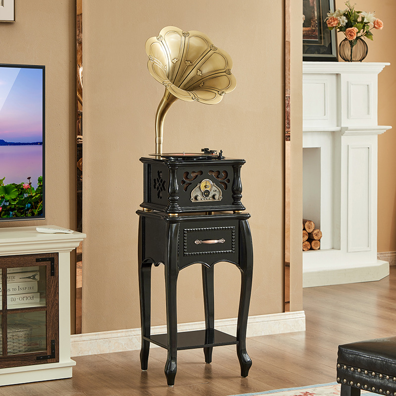 レトロな客間の蓄音機のヨーロッパ式の黒いゴムのレコード機の誕生日の引っ越しの贈り物の経典の大きいスピーカーのbluetoothの音響