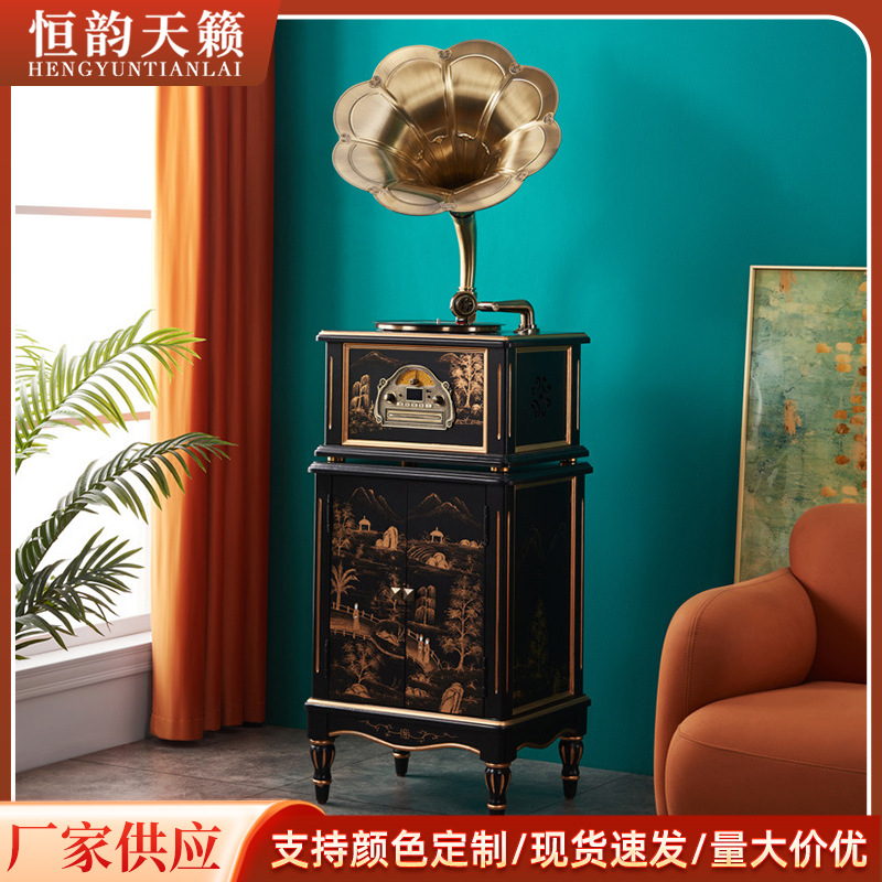 恒韻天籟客間軽豪華風復古蓄音機スピーカー青銅ラッパ模造古電黒ゴムレコード機
