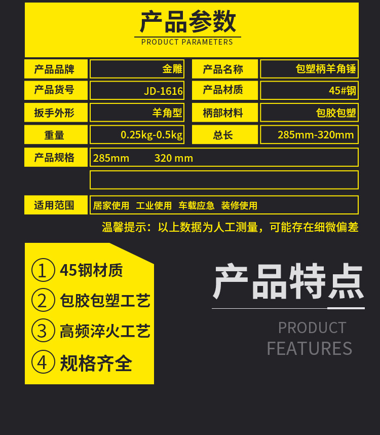 型番 JD-1616/赤柄0.25kg,JD-1616/黒柄0.5kg