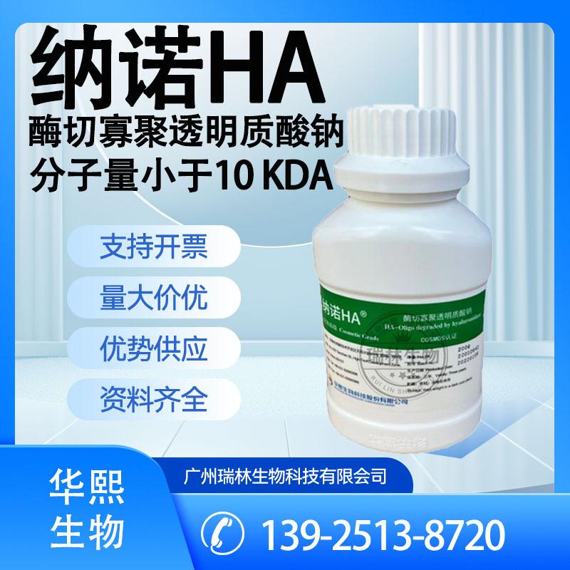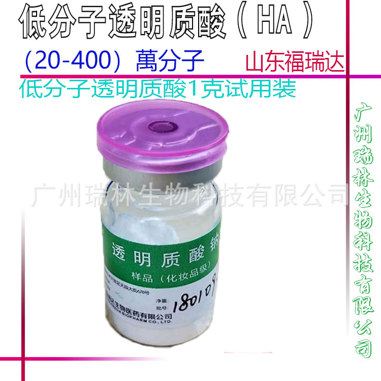 保湿、抗皱作用:皮肤的湿润水平与HA含量密切相关,随着年龄的增长,皮肤中HA含量降低,使皮肤保水功能减弱,产生皱纹。HA水溶液具有较强的粘弹性和润滑性,涂于皮肤表面,可形成一层保湿透气膜,保持皮肤滋润亮泽。小分子HA能渗透到真皮层,促进血液微循环,有利于皮肤对营养物质的吸收,起到美容抗皱的保健作用。