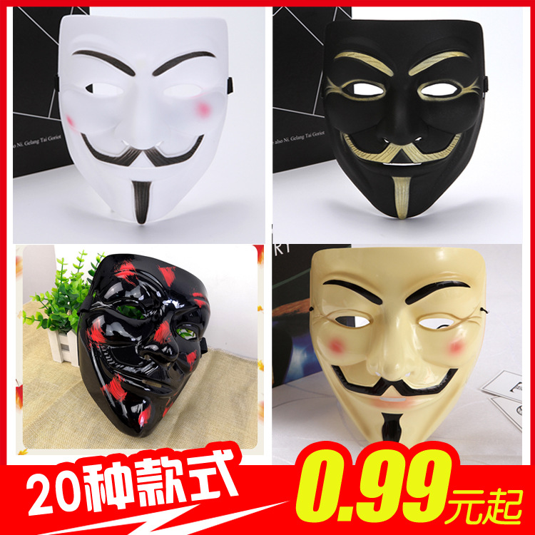 ハロウィーンv顔メッキ模造古風に厚いフロスト付きアイラインpvc環境保護カエデ葉純黒色v字マスク卸売り