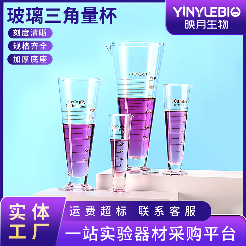 玻璃三角量杯大容量实验室高硼硅带刻度量杯加厚底座带具嘴组培实