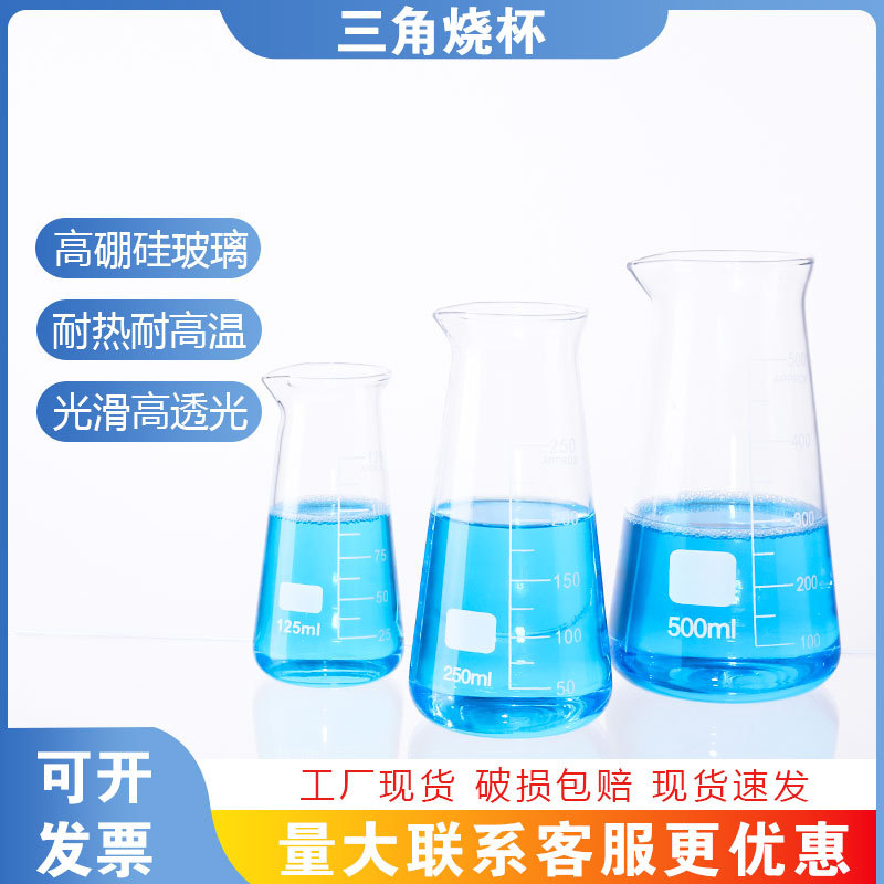 三角ビーカー125/250/500mlの実験器材は高ホウ素シリコン三角ビーカーガラス三角計量カップを厚くした