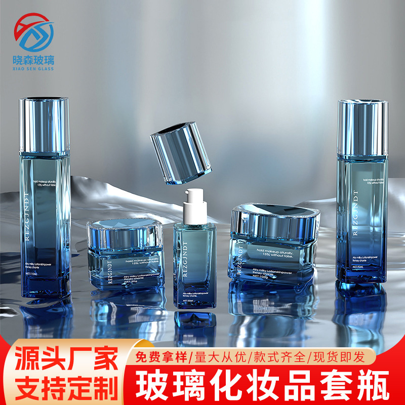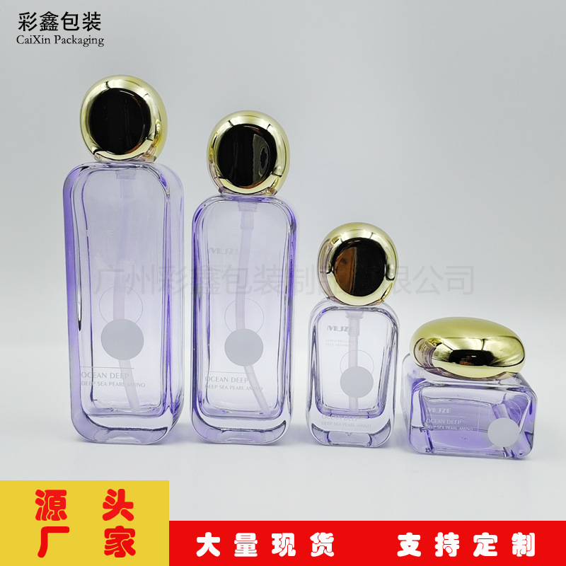 现货 30g-120ml简约扁圆电镀玻璃套装瓶护肤乳液瓶面霜眼霜膏霜瓶