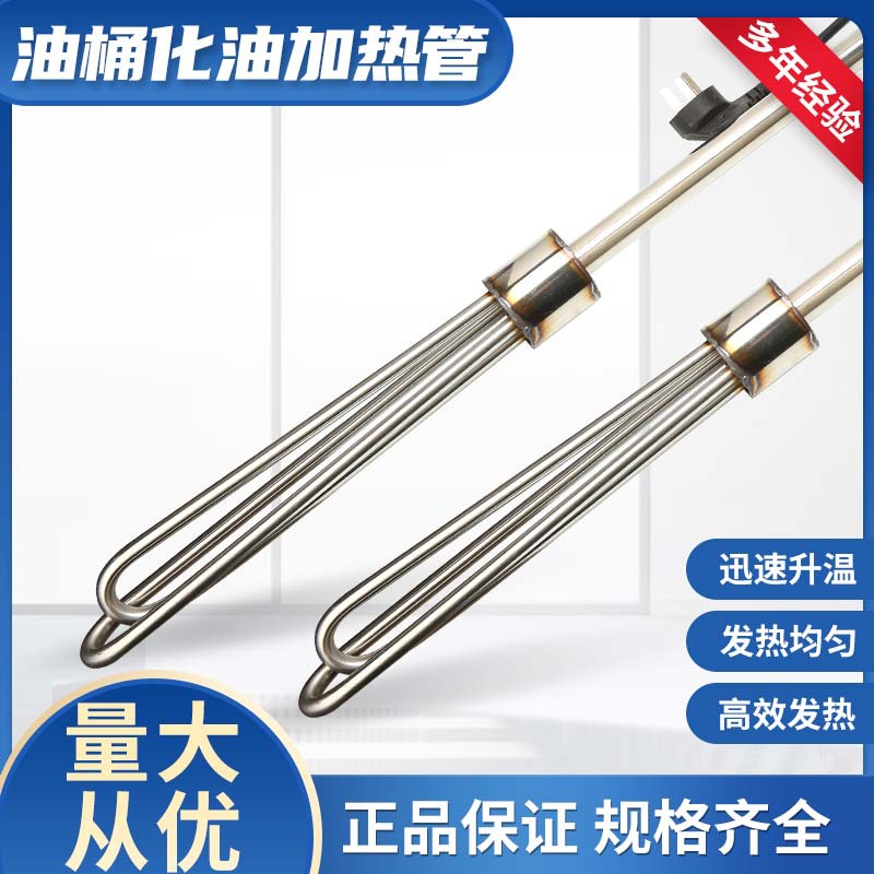 使用说明:使用时必须将加热管发热部分全部浸入油中,然后接通电源,当油温达到使用温度后、断开电源发热区冷却后方可取出加热管。