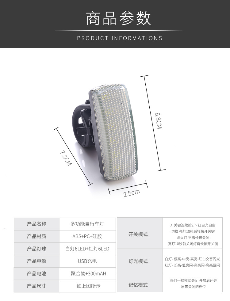 ホット販売金usb充電自転車灯テールライトメーカー直販マウンテンバイク灯クロスボーダーライト卸売り