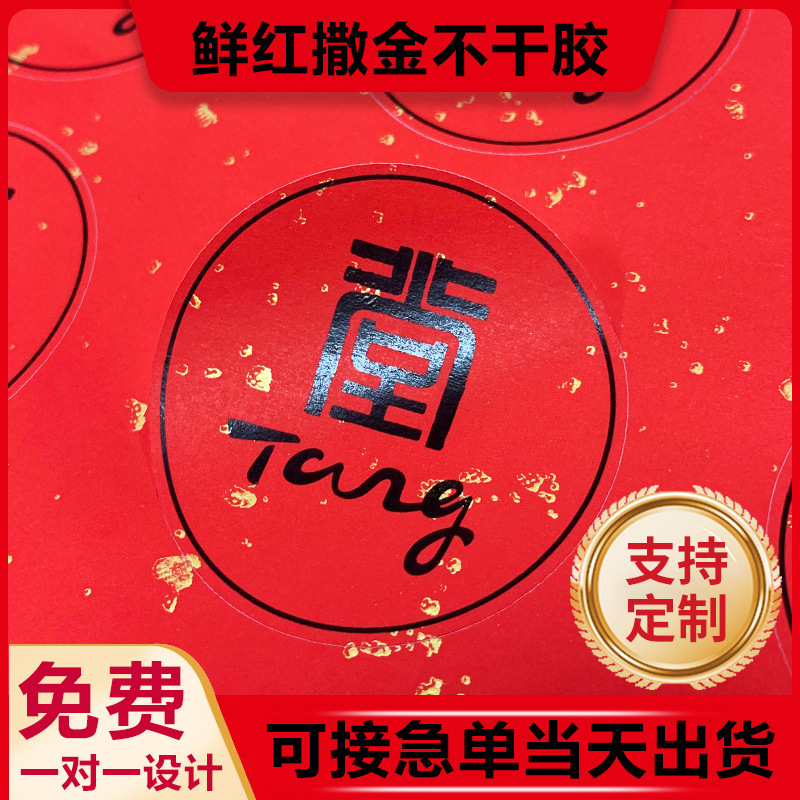 ステッカーカスタマイズ、箔押し銅板紙、粘着ラベル、食品ラベル、ロゴ、丸ラベル、偽造防止バーコード、裏面粘着