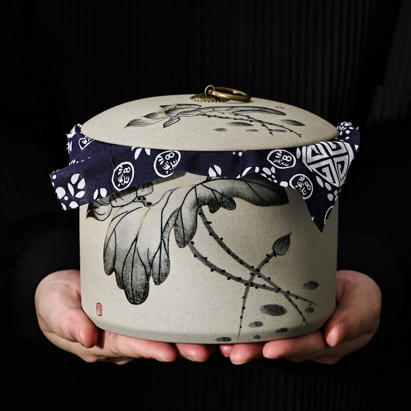 レトロ粗陶茶葉缶プーアル茶缶陶磁器密封缶家庭用茶葉貯蔵缶収納缶ギフトボックス
