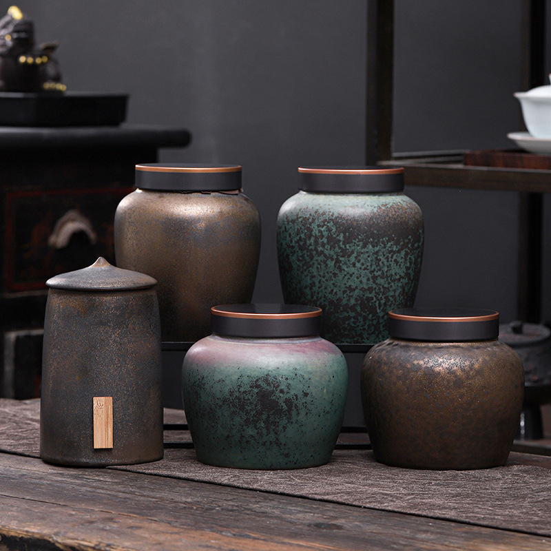 卸売り防湿粗陶茶葉缶金広口保存缶レトロ創意密封プーアル茶餅保存缶