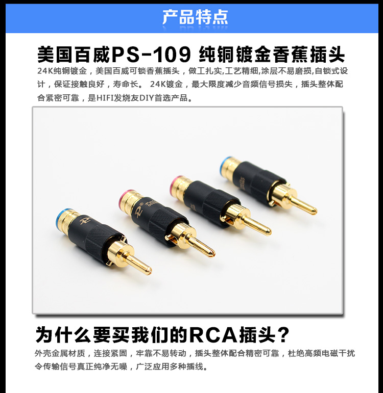 アメリカのバドワイザーのPS-109の自動ロック式のスピーカーのスピーカーのプラグのバナナのスピーカーのケーブルの端子