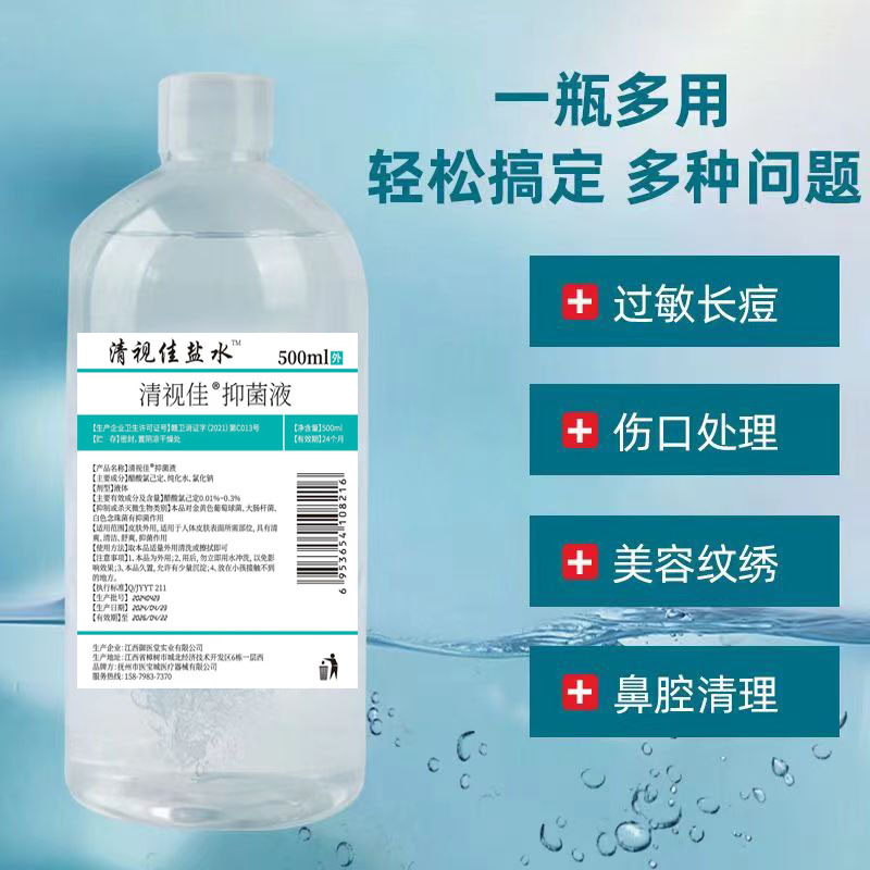 メーカーは清視佳塩水静菌液を供給して生理性塩水を洗浄します。