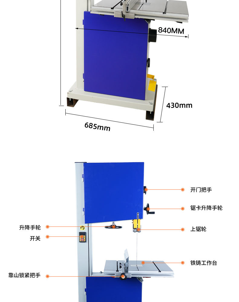多機能木工帯鋸機40型50型縦型押し台帯鋸丸太板機小型家庭用曲線鋸