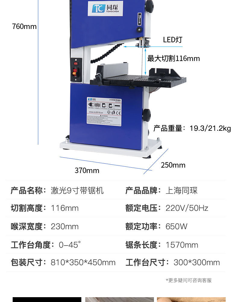 同琛9インチレーザー金型バンドソー木工曲線造形鋸金属小物用鋸盤電動家庭用