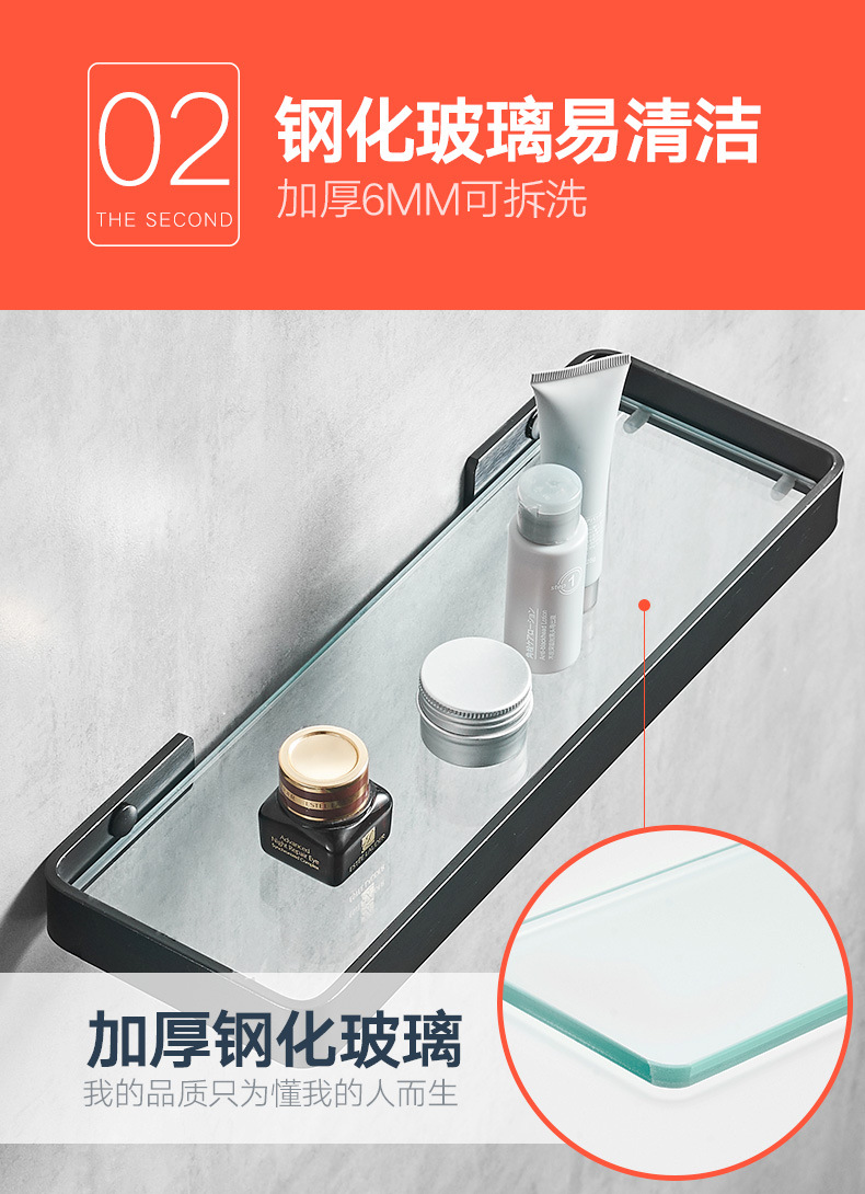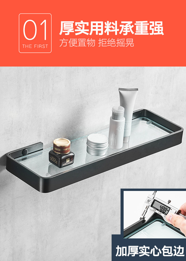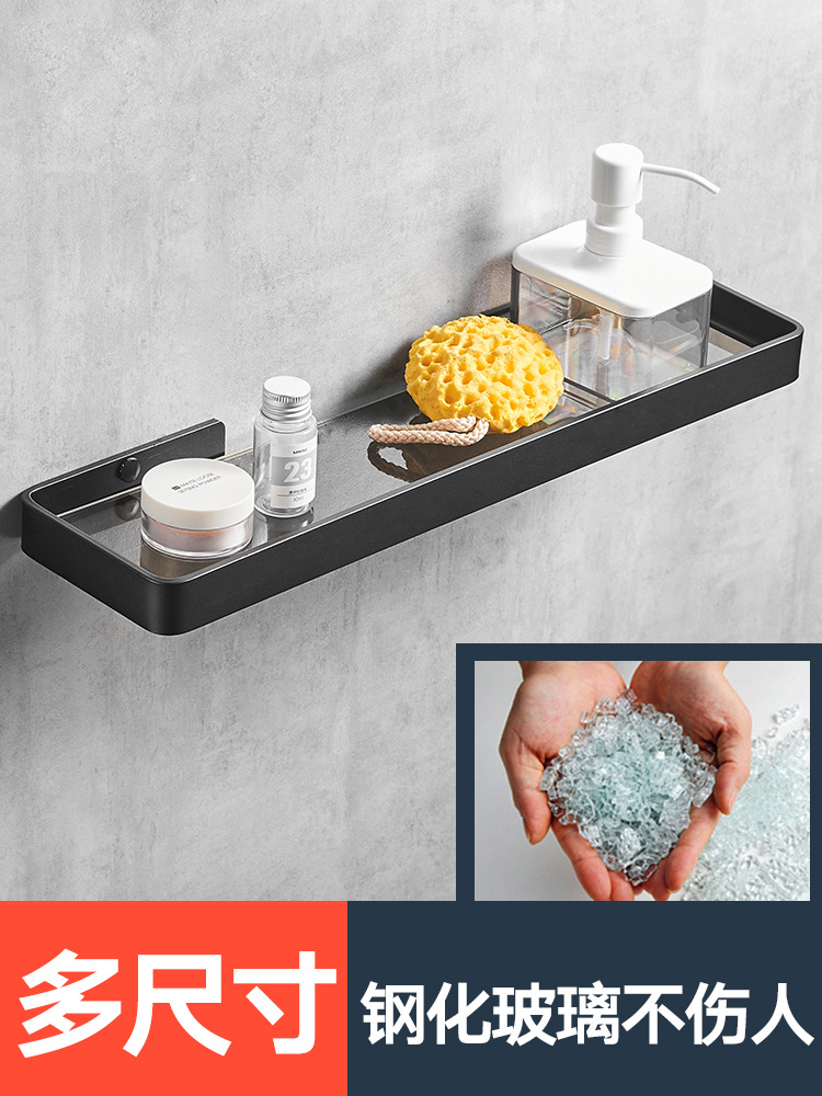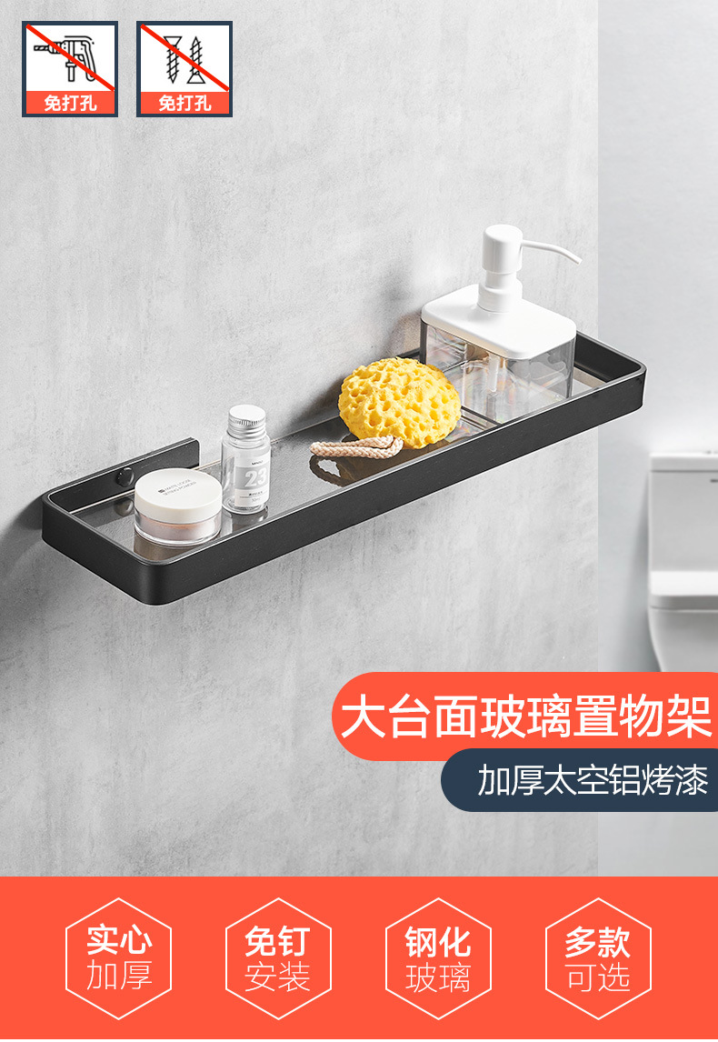 パンチフリースペースアルミニウムバスルーム収納ラックバスルームガラス化粧台ブラックミラーフロントガラス収納ラックホテル