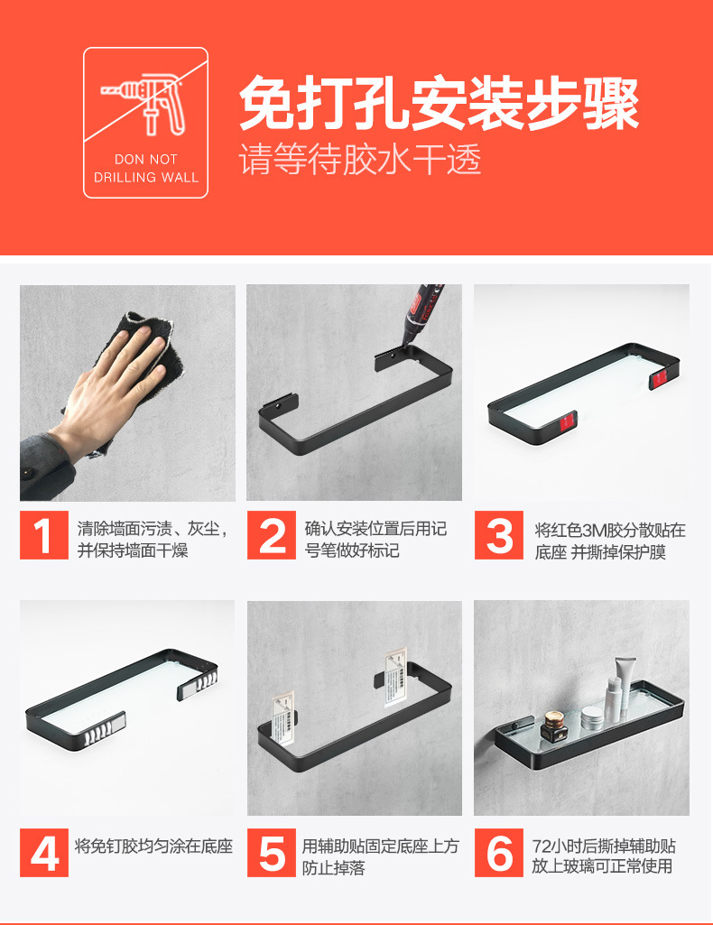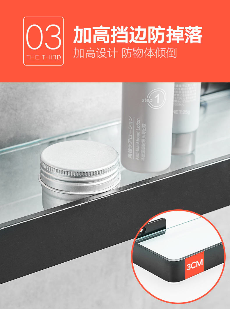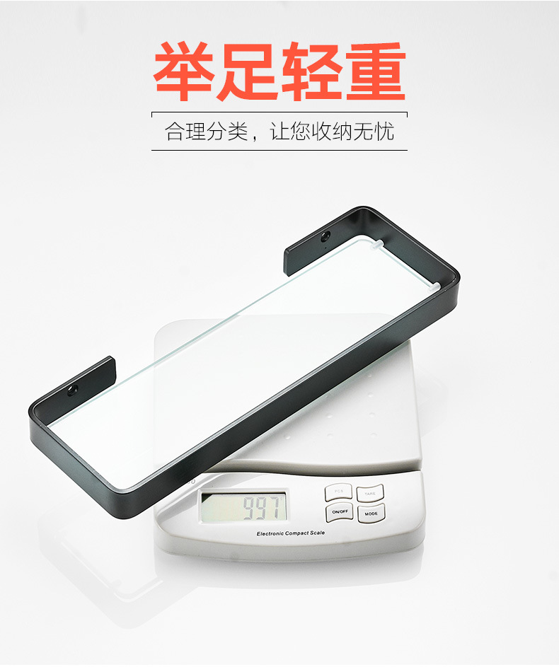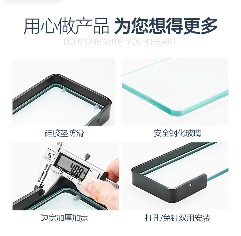 パンチフリースペースアルミニウムバスルーム収納ラックバスルームガラス化粧台ブラックミラーフロントガラス収納ラックホテル