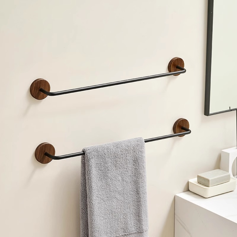 黒胡桃木タオル掛け穴なしシングルバートイレタオル掛け壁掛け式宇宙アルミ棚