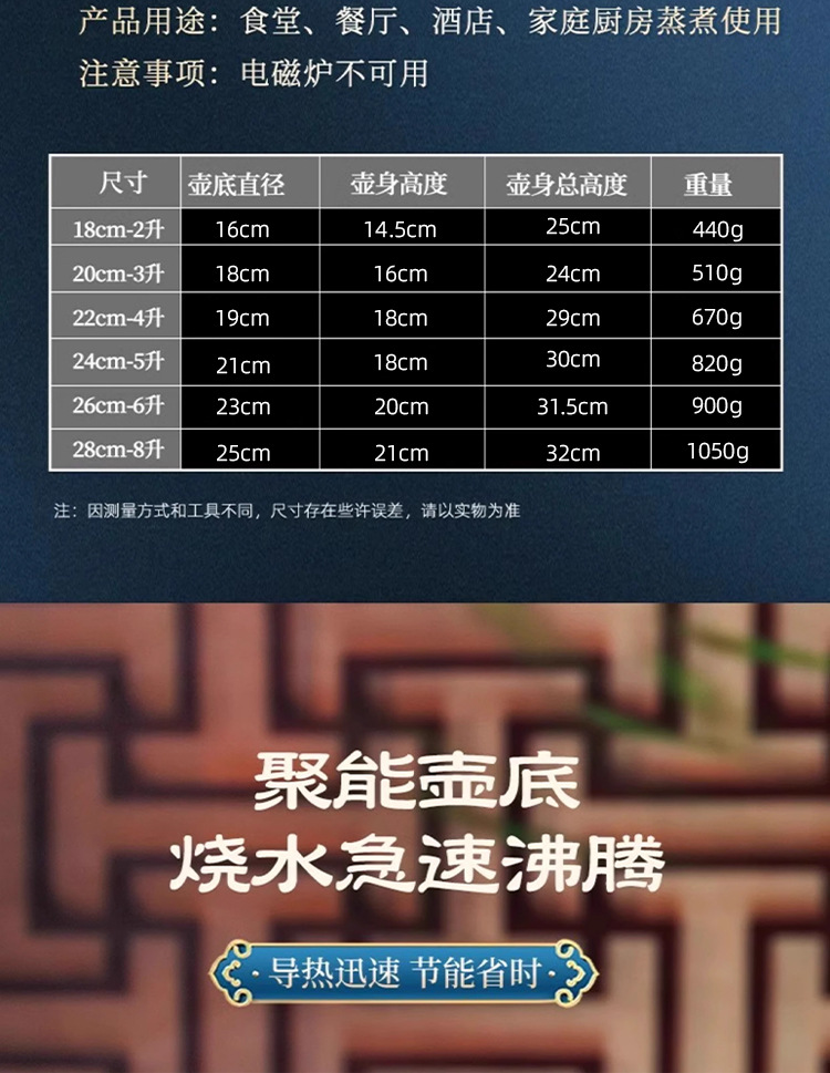 容量 18cm-2リットル民族アルミポット,20cm3リットル民族アルミポット,22cm-4リットル民族アルミポット,多笑11*16厚さ990個,26cm-6リットル民族アルミポット,28cm-8リットル民族アルミポット