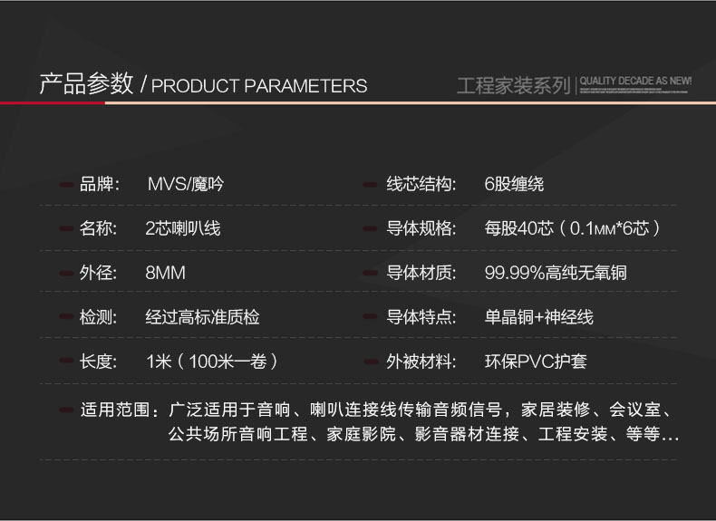 家庭影院音箱线 线圣AQ喇叭线 2芯环绕音响线 14AWG中置工程布线