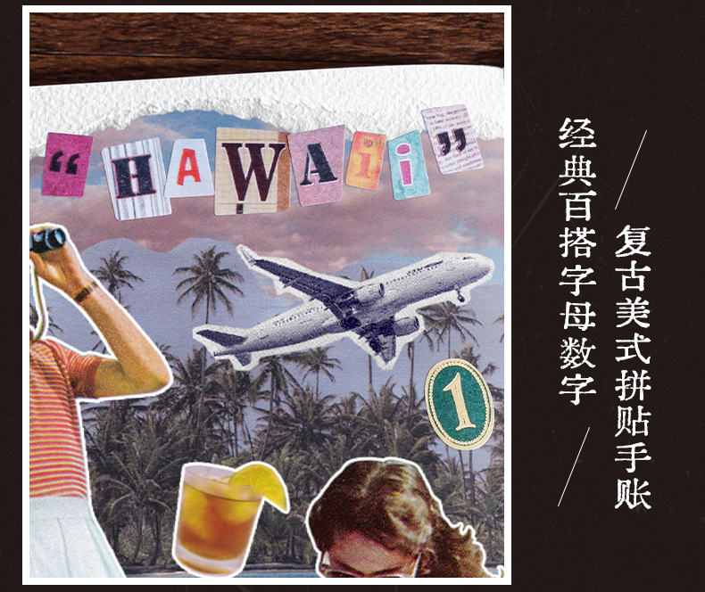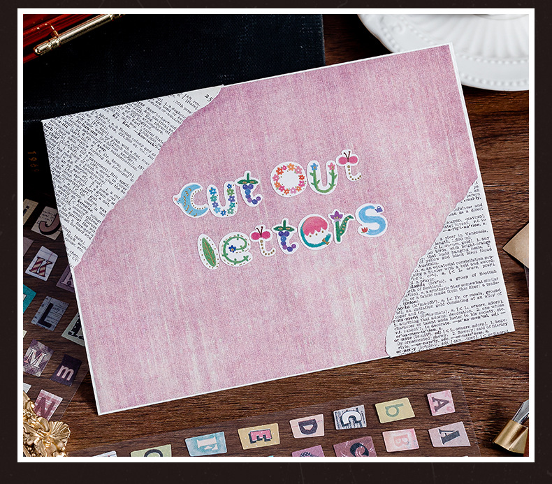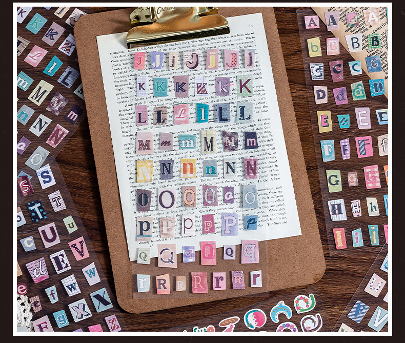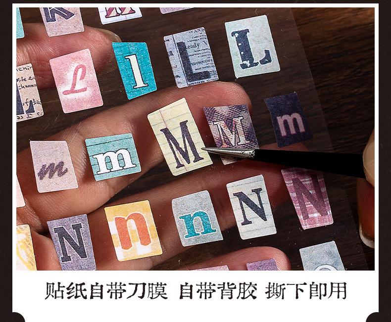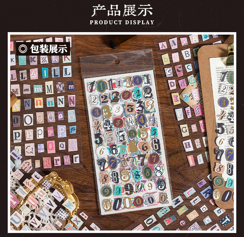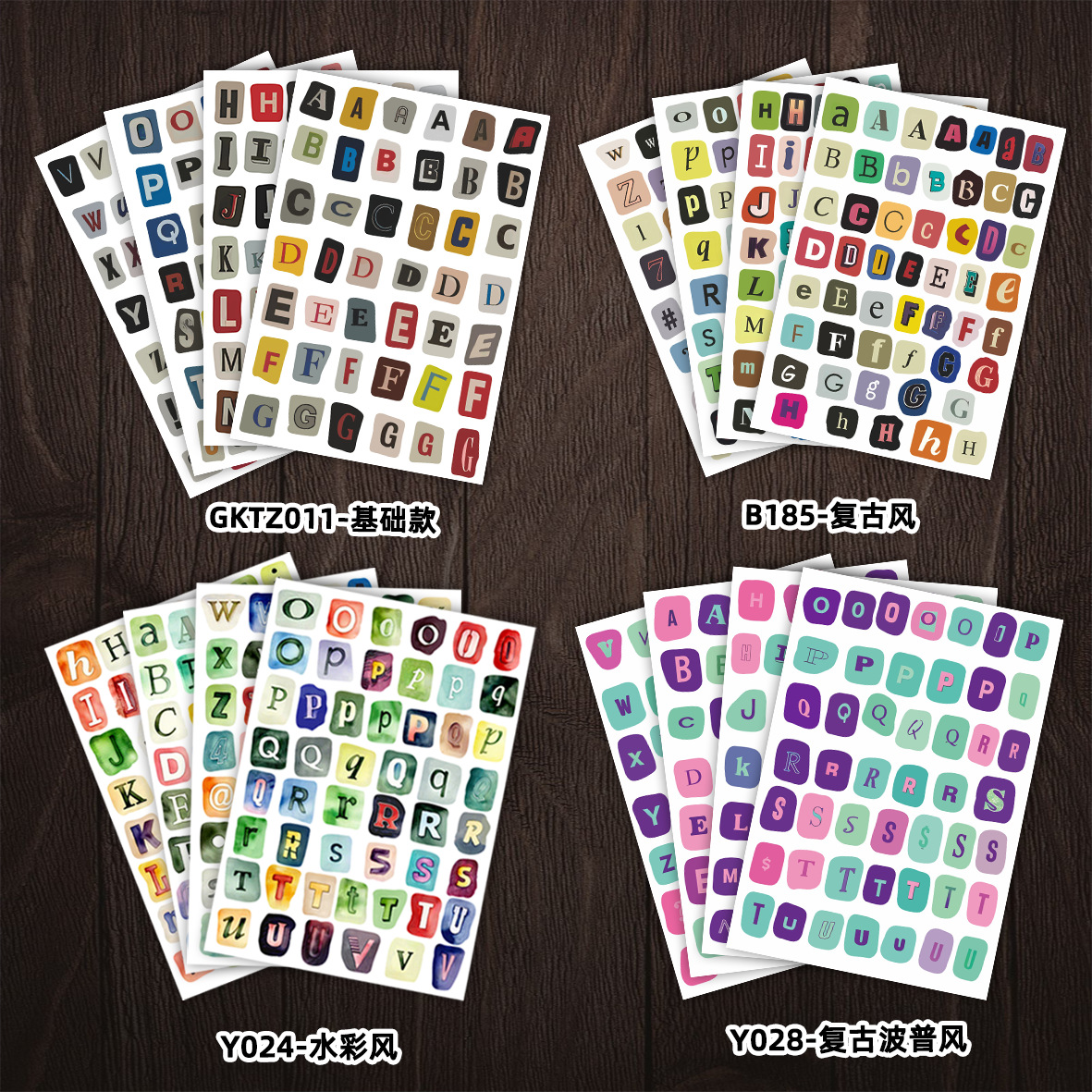 彩色水彩复古字母周边文创贴纸文具笔记本diy装饰pvc贴画跨境批发