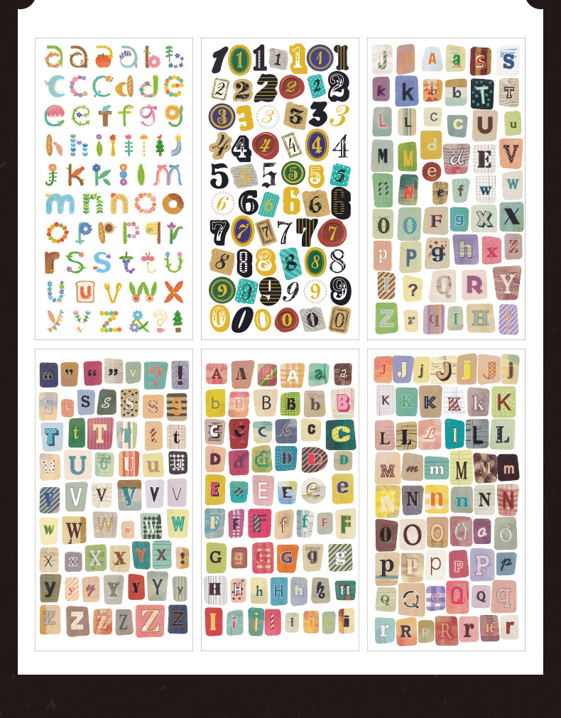 Xj0018新品アルファベット数字シール一式6枚入オフィス文教装飾シール手帳日記diyシール