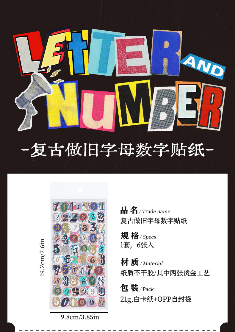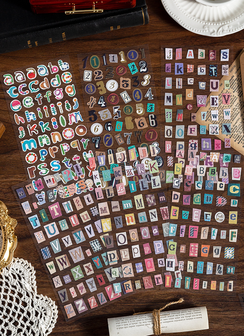 アルファベット数字記号ラベルステッカー学生手帳日記帳基礎コラージュ素材装飾ステッカー