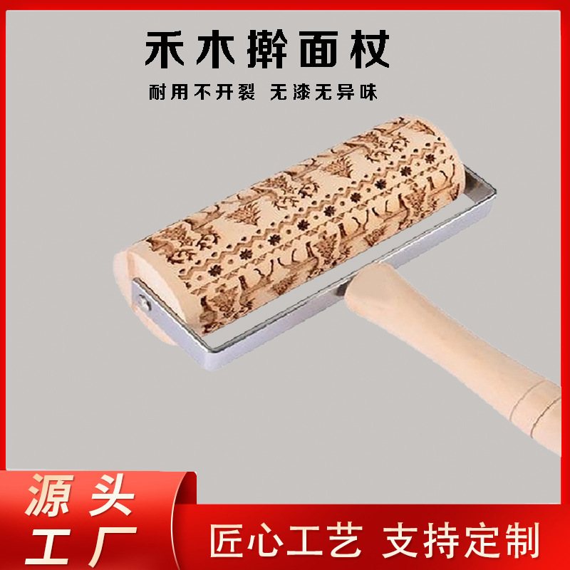 热销跨境圣诞节礼物印花禾木擀面杖激光雕刻 diy手工烘焙曲奇饼干