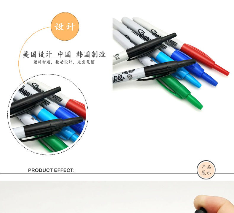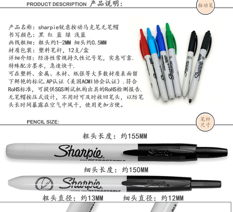 三福sharpieマーカーペン押しペン32701油性自動伸縮マーカーペン押し型マーカーペン