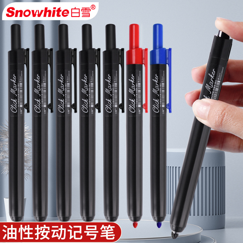 白雪按动记号笔大容量黑色速干签字标记物流快递油性防水马克笔