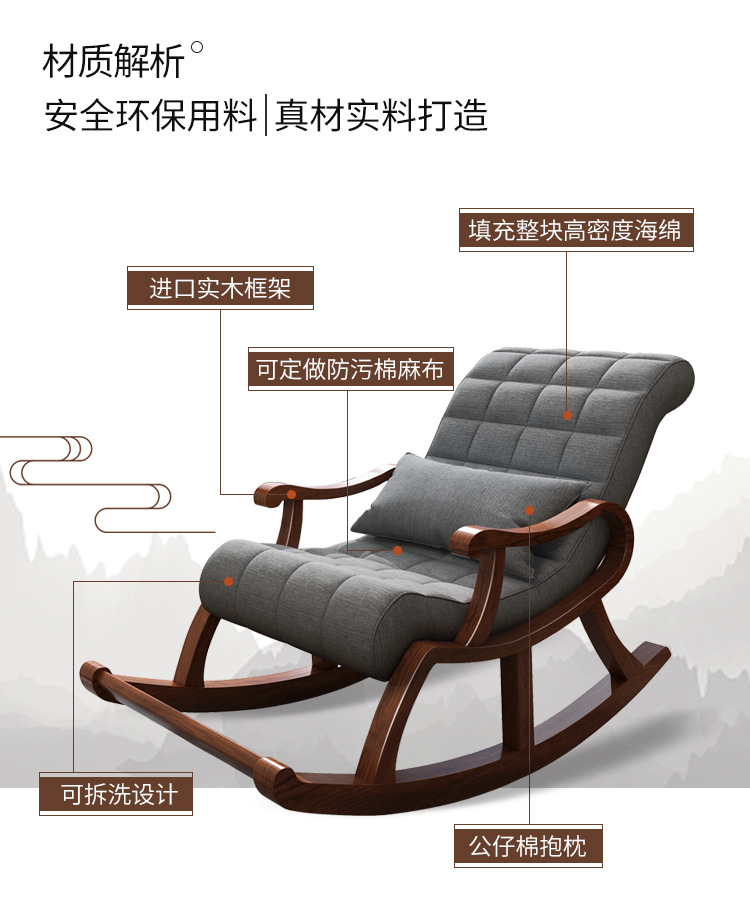 新中式全实木胡桃木懒人卧室摇椅客厅大人老人午休睡觉躺椅休闲椅