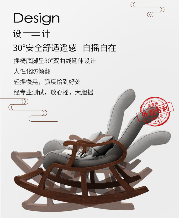 中国式レジャー老人椅子実木怠け者ロッキングチェア逍遥椅子成人昼寝椅子バルコニー老人椅子