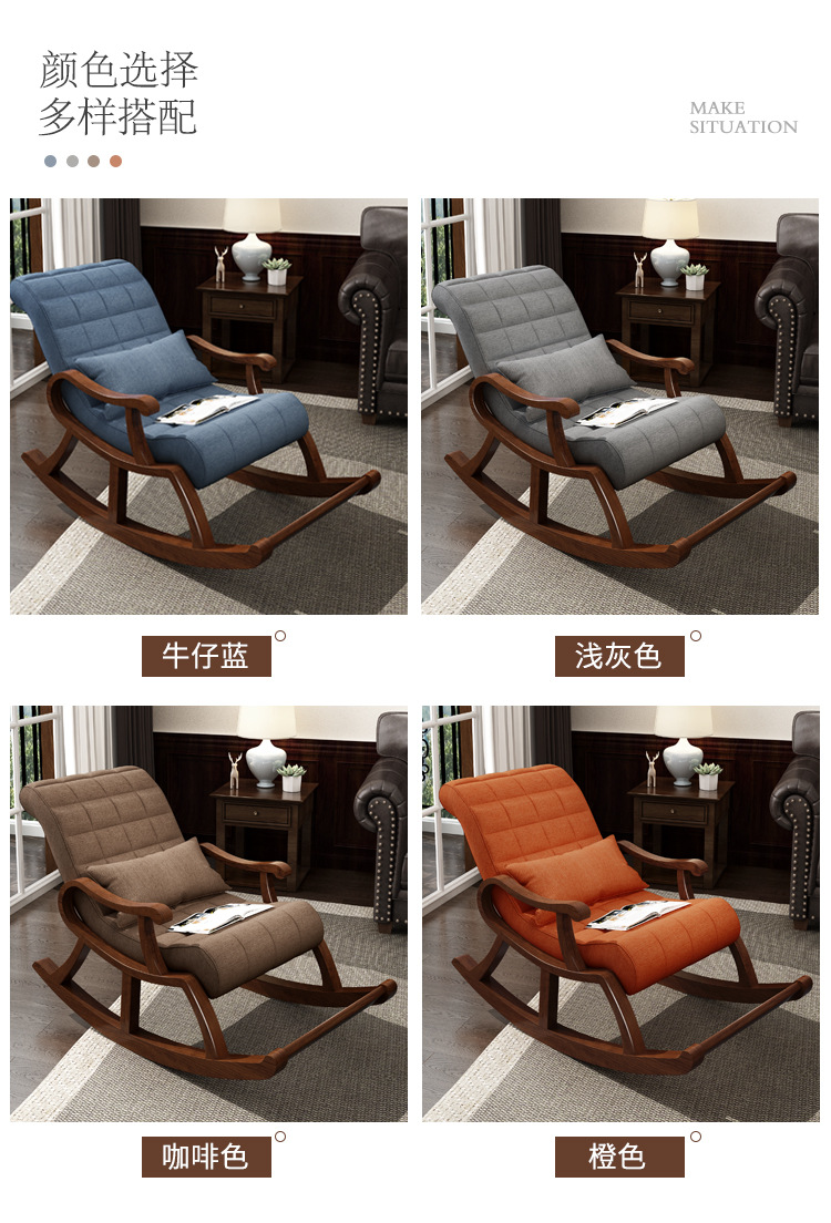 卸売り家庭用ロッキングチェア実木レジャーリビングロッキングチェアベランダリクライニングチェア怠け者椅子昼休み昼寝リクライニングチェア