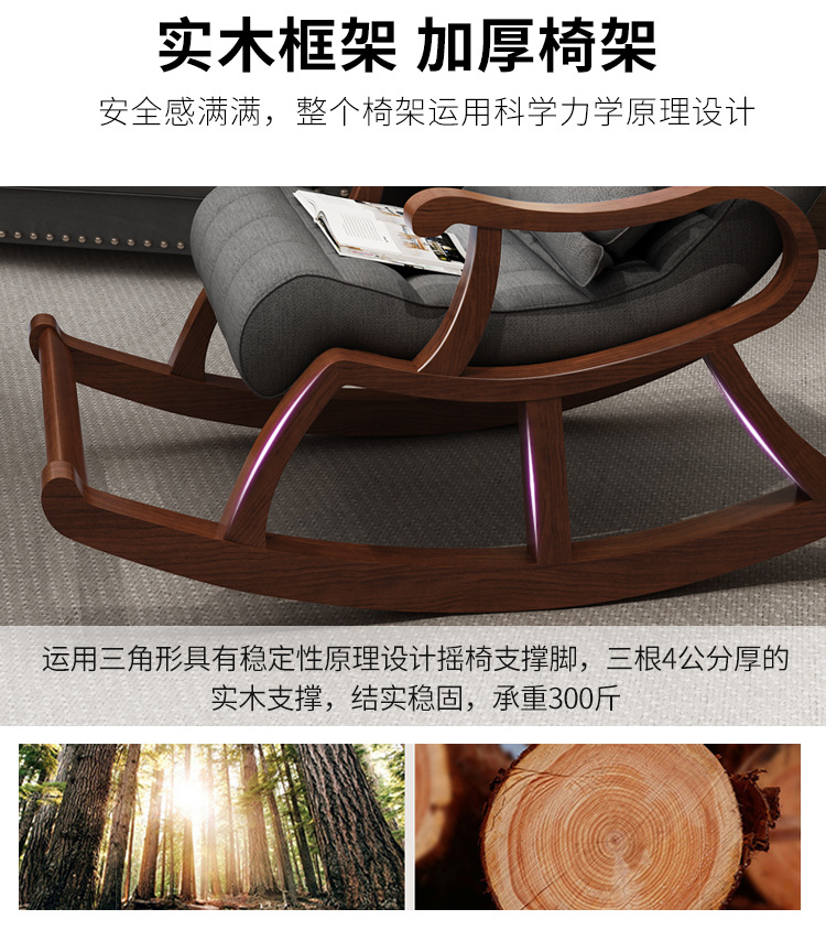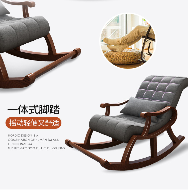 北欧無垢材ロッキングチェア、家庭用高齢者用リラックスチェア、怠け者用レジャーチェア、昼寝用ロッキングチェア、リクライニングチェア、快適なチェア