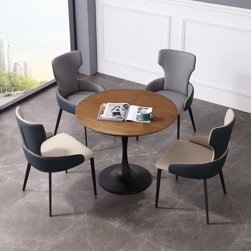 北欧のビルはテーブルと椅子の喫茶店のミルクティー店のテーブルと椅子の組み合わせのビジネス接待の小さい円卓の4s店の皮の椅子を交渉します。