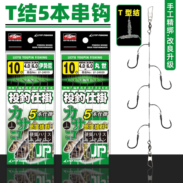 T型結び5フック釣りセット伊勢尼丸世海竿路亜歪口巻き防止フック仕掛け釣りフック